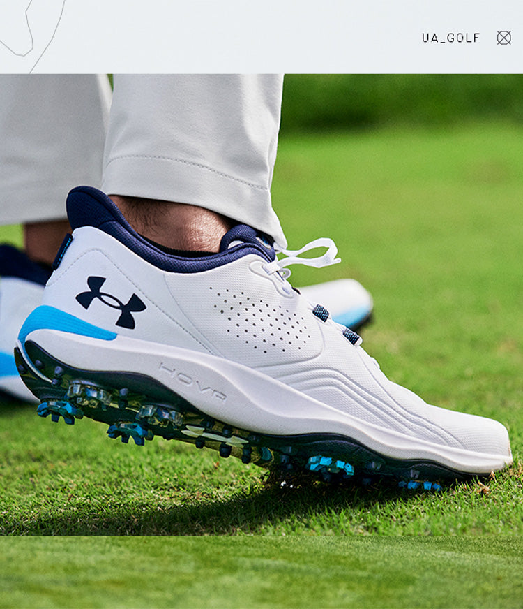 Unlock the power of your natural swing with the UA Drive Pro golf shoes. Featuring UA Swing Support System (S3) technology and energy-returning UA HOVR foam, these shoes provide unparalleled traction and support for maximum performance on the course.