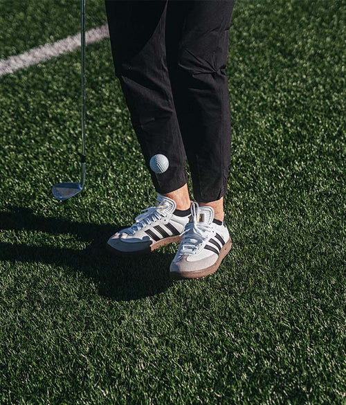 The Adidas Samba shoe, returning this season from Adidas Golf. These limited-edition shoes feature water-resistant properties, high-performance recycled materials, and an added EVA cushioned midsole offering a comfortable yet classic looking shoe for your Winter wardrobe. A timeless, iconic Adidas design, these shoes are sure to help you perform to your very best on the course, whilst looking great off the course. Available in four colour-ways for the season.