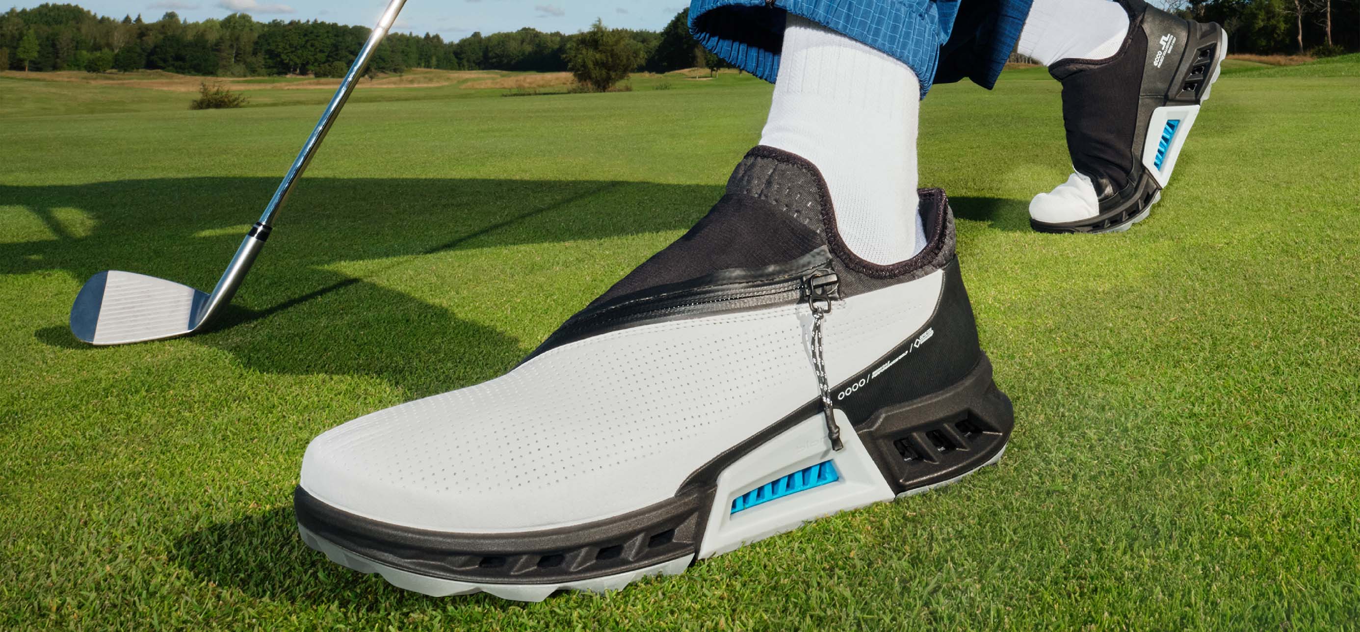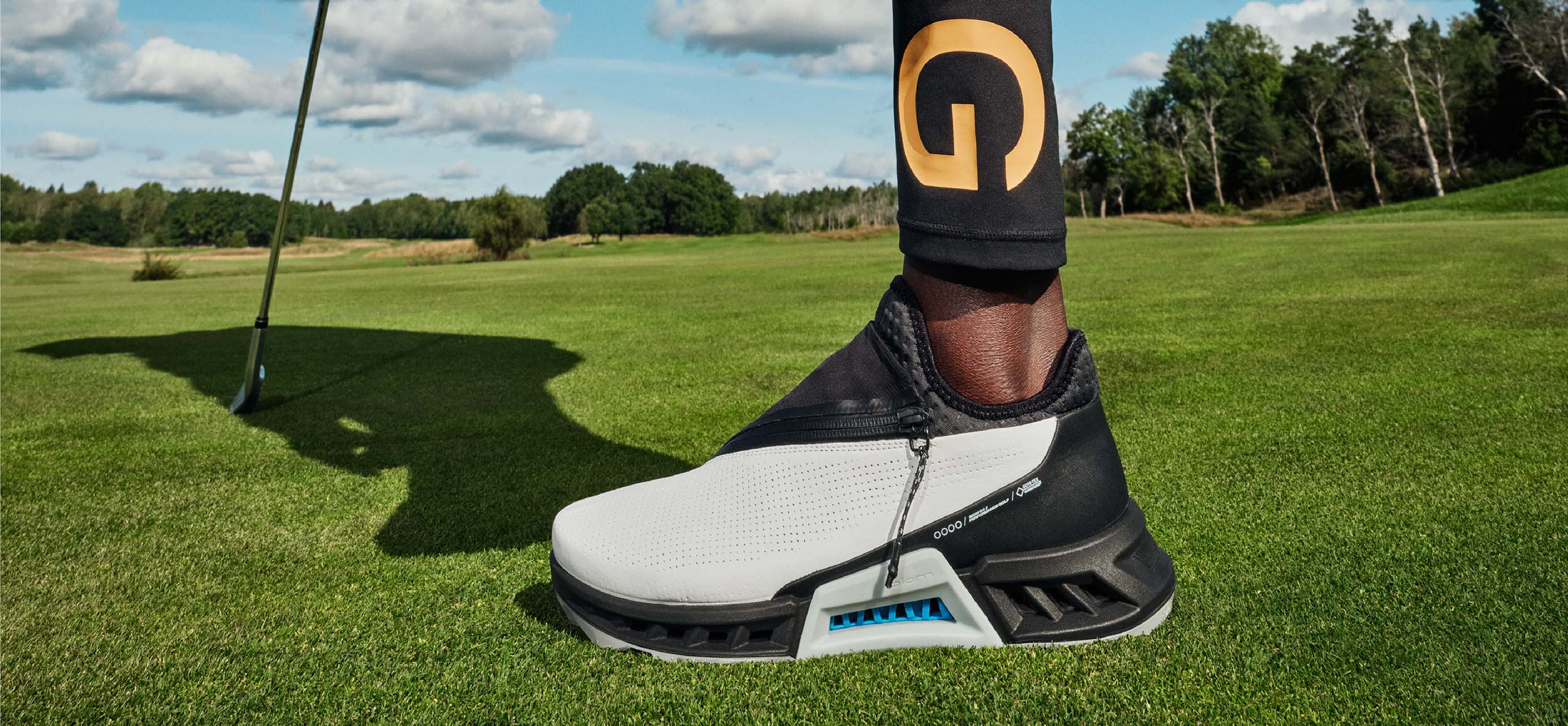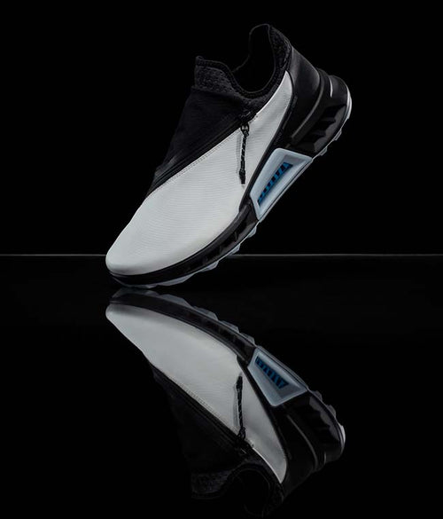 The Limited Edition Biom C4 shoe is brand new to us and is the first collaboration between Ecco Golf and J.Lindeberg. These shoes have a dramatic, fashion-forward style mixed with advanced performance for every golfer. The shoes are crafted from premium Ecco leather from their own tanneries. They feature a curved zip on the front that hides a speedlace system and the futuristic looking sole adds athletic appeal to this monochrome shoe. They are fully waterproof thanks to the GORE-TEX surround and the progressive MTN grip outsole ensures traction on a variety of surfaces.