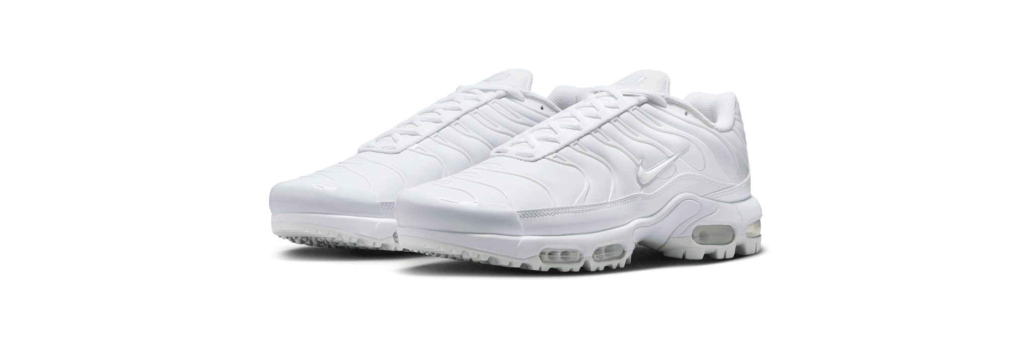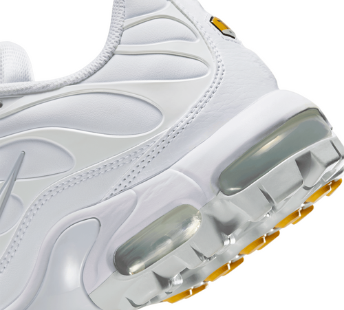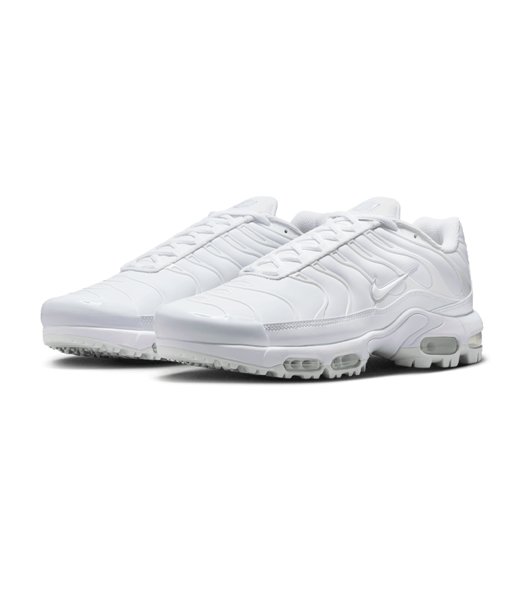 This Air Max Plus combines the design features that made the Plus famous with waterproof material and a traction pattern made for 18 holes. Waterproof material on the upper helps keep you dry in wet-weather conditions. Tuned Air Zoom unit in the forefoot delivers a soft ride while helping to keep you stable. Max Air in the heel gives you support. Rubber lugs made of wet traction rubber offer great grip in any condition. Internal cage combines with a web lacing system that provides lateral stability and a seamless fit. Strong midfoot plate provides lateral stability.