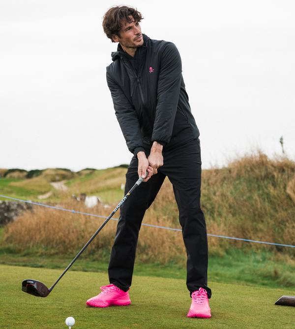This exclusive drop reinvents on-course style with sleek black-on-black tones, amplified by striking pink embroidery that adds a bold contrast to every piece. It’s a collection that speaks to those who demand more from their golf wardrobe—athleticism, elegance, and a fearless attitude.