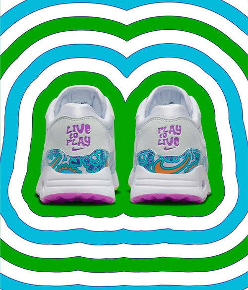 It’s about staying wavy whether you’re kicking it on the driving range, meditating in the middle of a round or speaking your best shot into existence. Psychedelic colors and far-out fonts help find your happy medium no matter if you live to play or play to live. Groovy, baby.