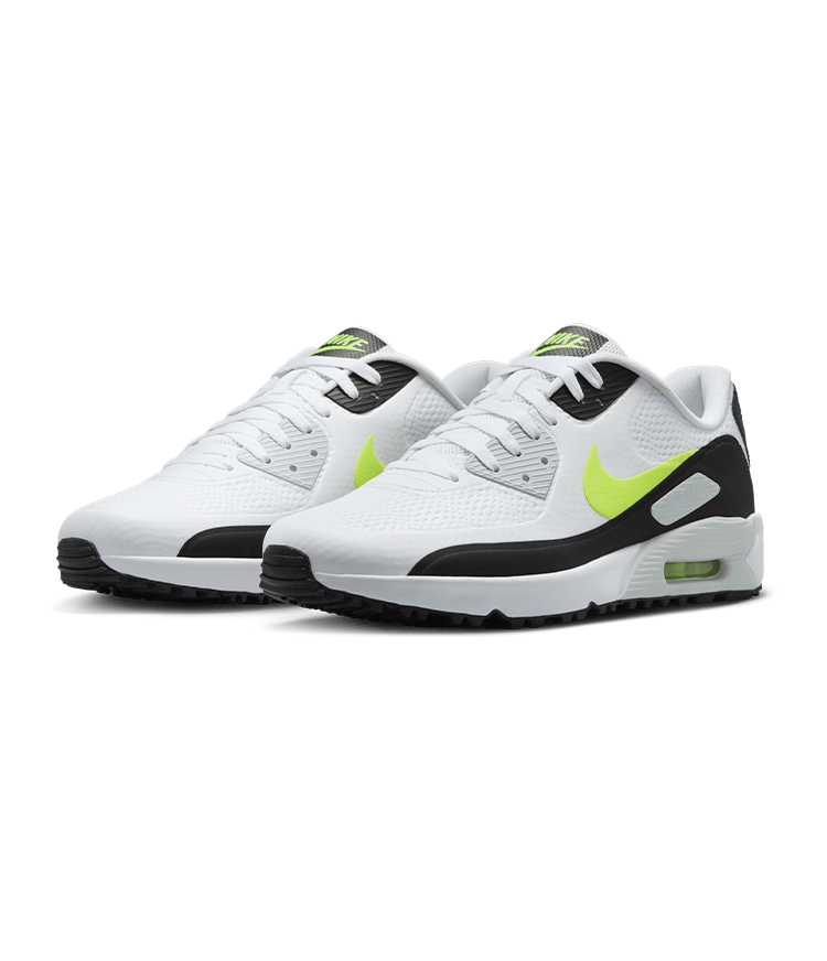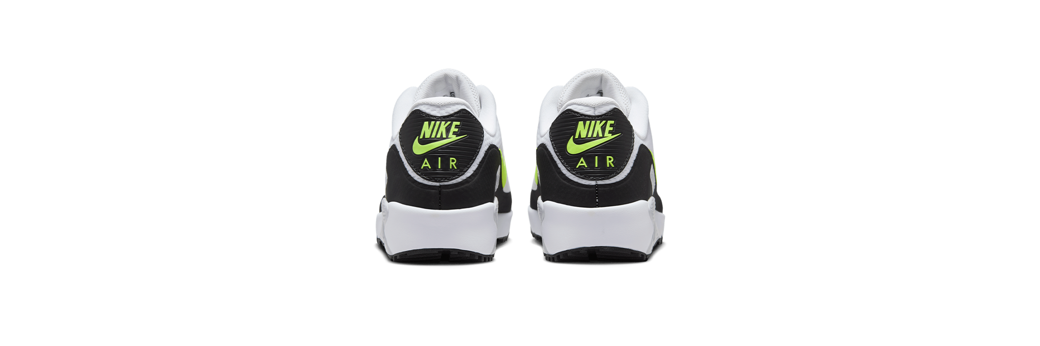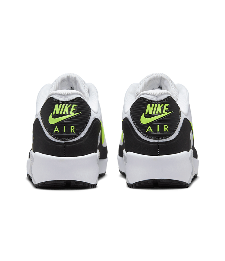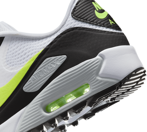 Nike has stayed true to the original Air Max 90 blueprint, honouring its retro running roots while engineering key performance upgrades for the modern golfer. From fused overlays to a rugged integrated traction pattern, this is a shoe built to go from concrete to clubhouse without compromise.The upper features mesh panelling wrapped in a thin, flexible overlay, helping to keep out water while maintaining breathability. It’s easy to clean, quick to dry, and visually striking - particularly when paired with the signature neon Swoosh and classic Air Max heel badge.