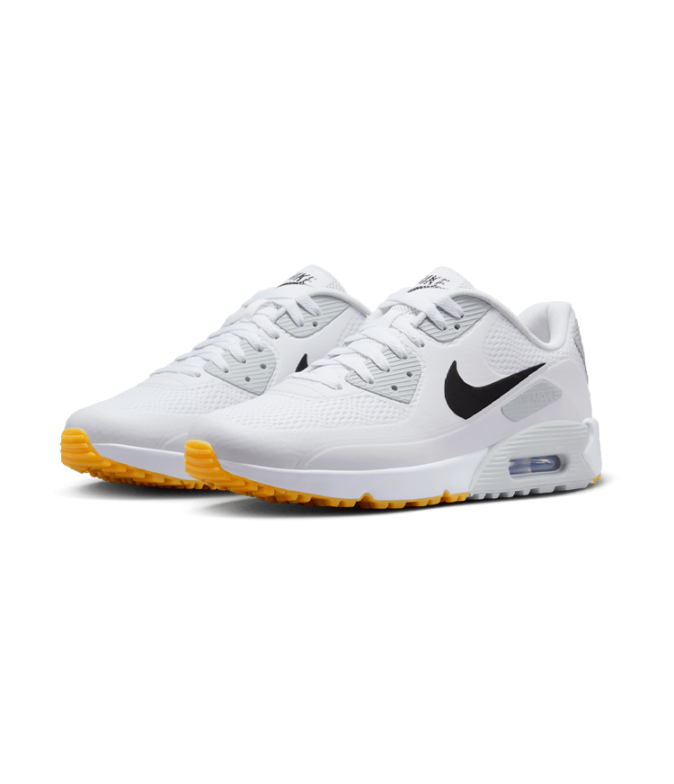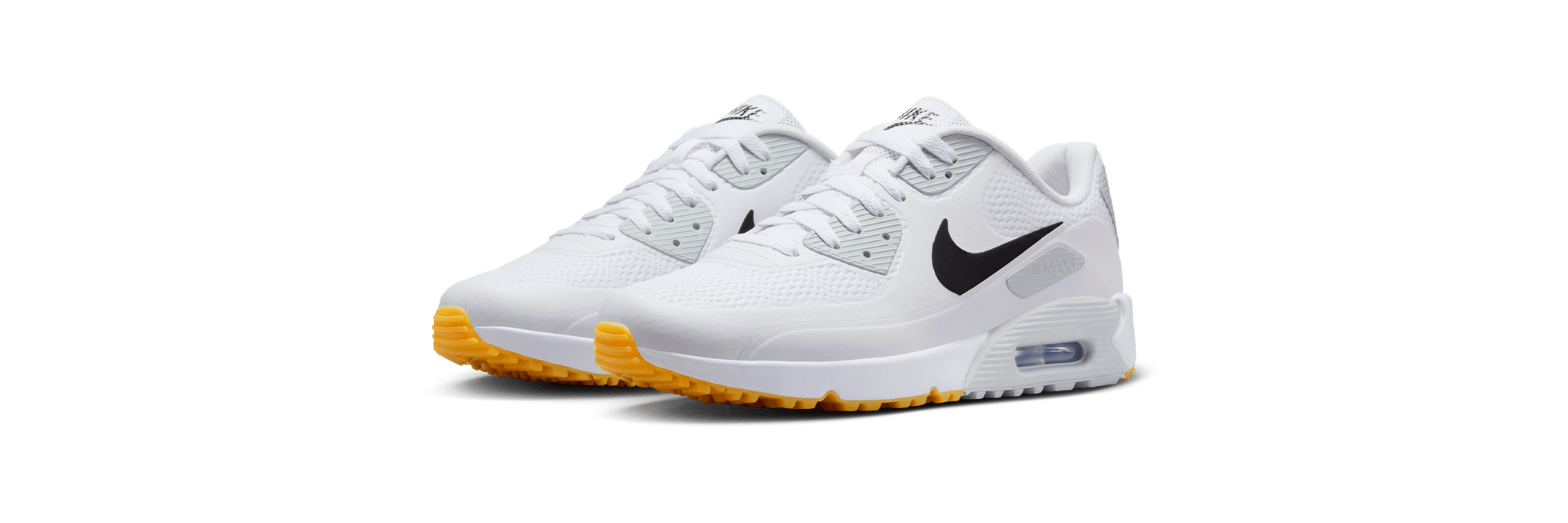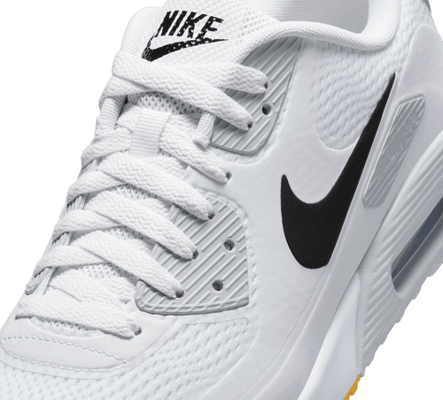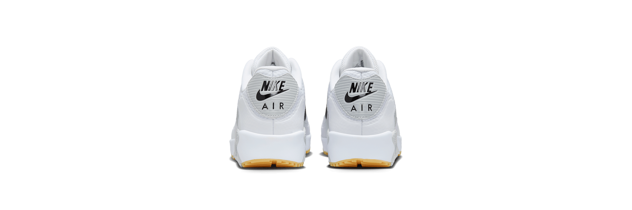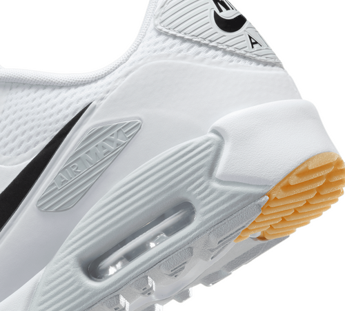 The original Nike Air Max 90 was renowned for its clean lines and timeless style. The Nike Air Max 90 G stays true to the OG icon with a few updates made for golf, like integrated traction and a thin overlay that helps keep out water. A foam midsole and Max Air unit in the heel cushions every step. An integrated traction pattern gives you exceptional grip in a variety of conditions. The new design draws its inspiration from the iconic Waffle outsole on the original Nike Air Max 90.