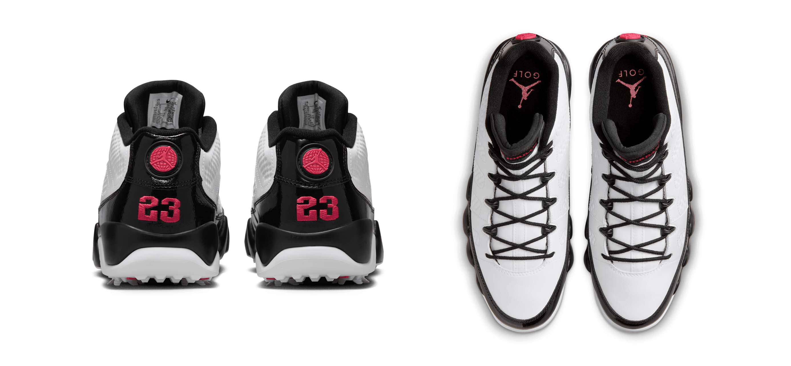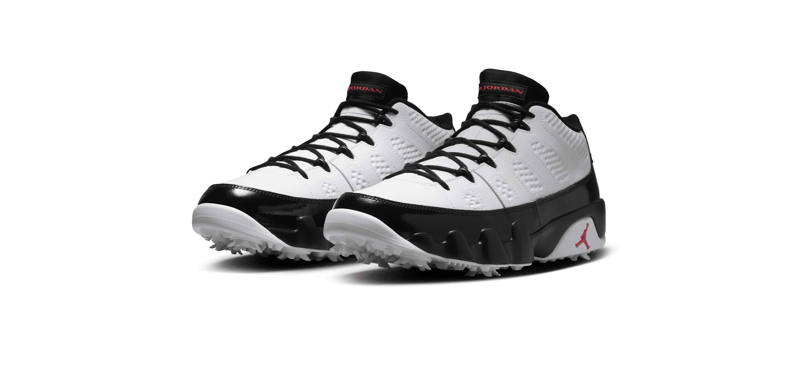 The Jordan 9s have been retrofitted for the golf course before, but the latest iteration sees Jordan switch out the running midsole for a mold that more closely matches the basketball version. In that sense, the conversion mirrors the Air Jordan 6 Low G which made its return to the golf market last February with the iconic “White Infrared” colourway. This time around, classic AJ9 “True Red” colorway is reproduced to a tee, albeit with a glossier black mudguard. Underfoot you’ll find removable spikes matched with a TPU traction pattern to maintain grip on the fairways.