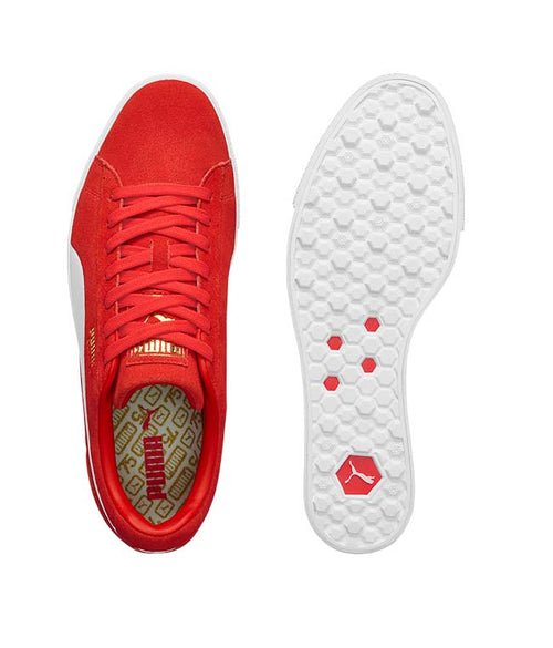 Puma Fusion Suede For All Time LE Golf Shoes. You can't go wrong with a classic! A limited edition shoe released to celebrate Puma's 75th anniversary. The PUMA Fusion Suede boasts features of a performance shoe while keeping traditional style. FUSIONFOAM technology provides unrivalled energy return and cushioning to keep you comfortable all day long. Strategic soles with hidden, recessed grip gives this shoe a fashion-forward look with superior spikeless traction.