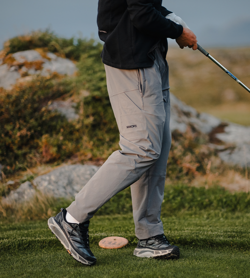 A technical worker trouser with a modern silhouette made fit for the golf course with classic double pleats and innovative water and wind resistant recycled performance fabrics.