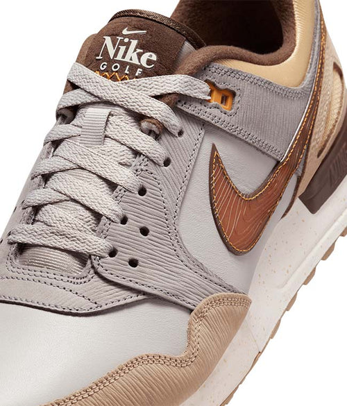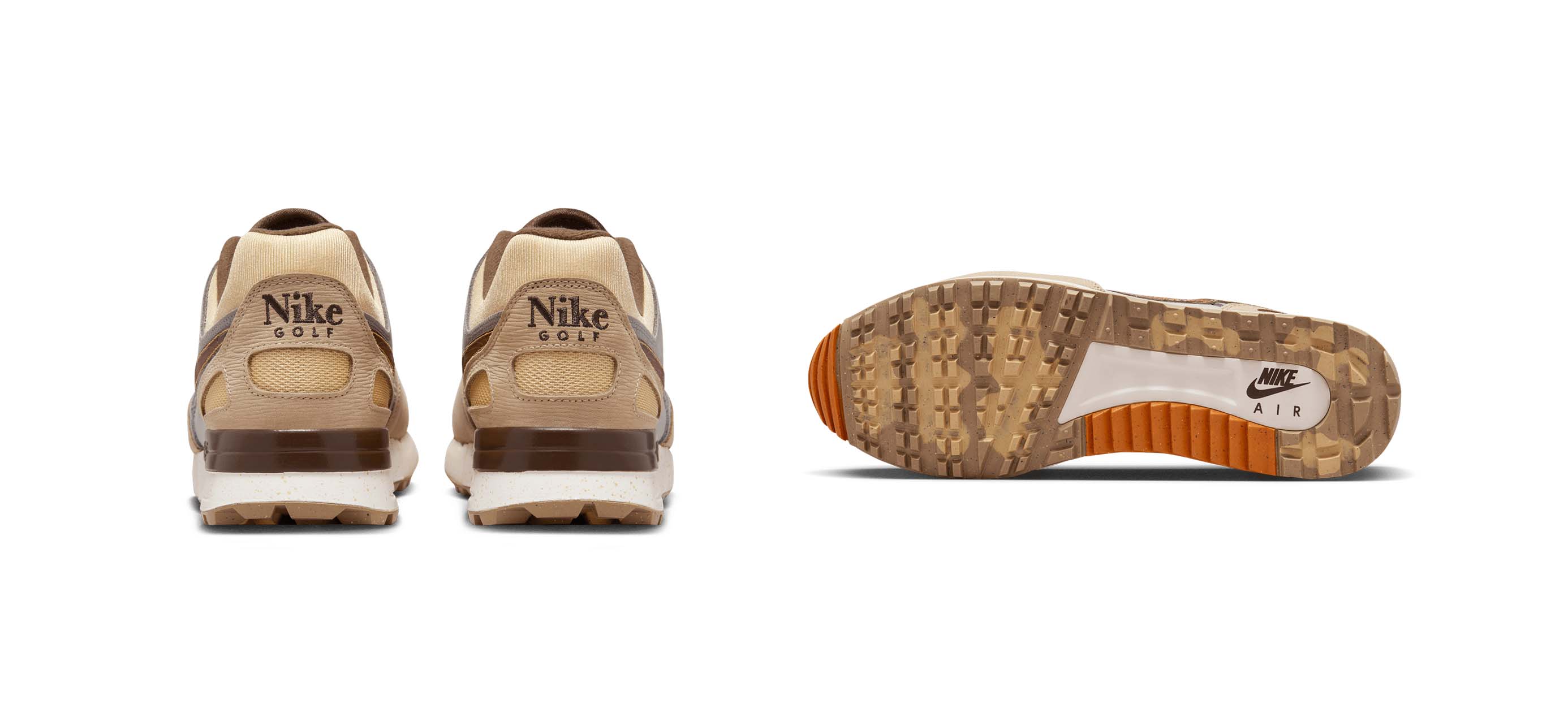There’s just something about the crack of an old-school wood club or the smell of a fresh pour after 18 holes. This special edition has barrel-aged bourbon browns and smoked streaks of razor-sharp oranges that nod to Kentucky. A wood grain graphic on the Swoosh logo and a tree trunk-inspired outsole highlight a design rooted in tradition and timber.