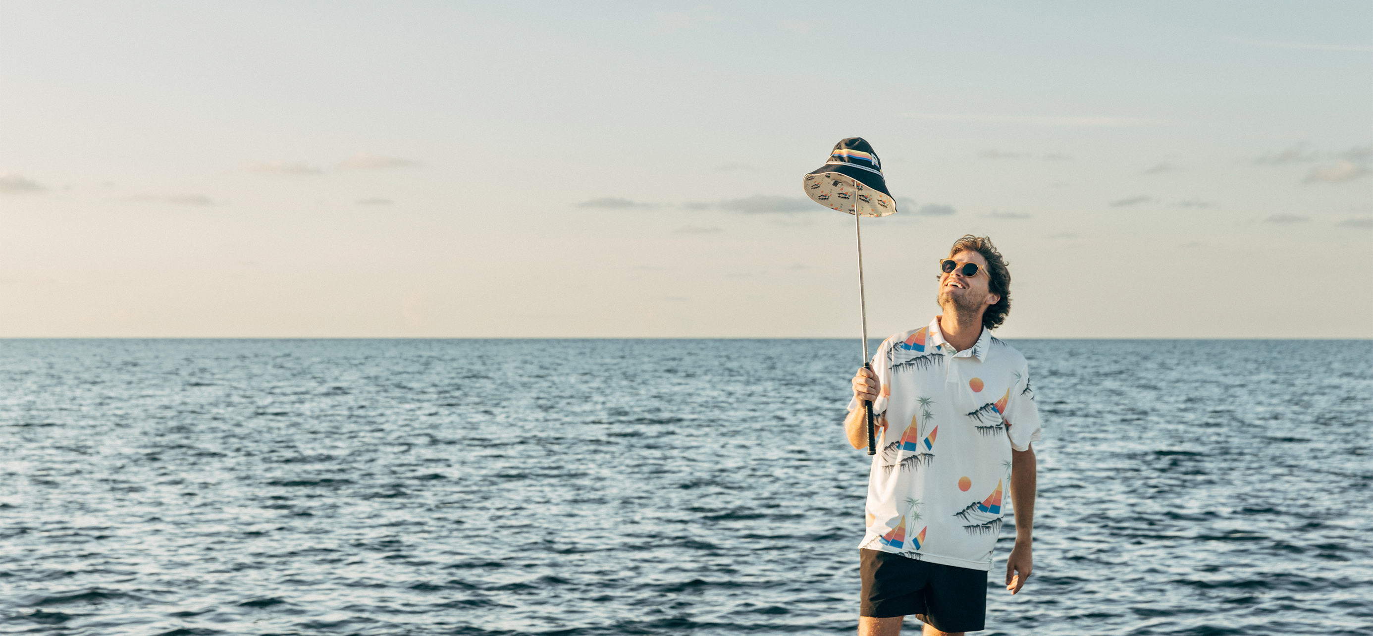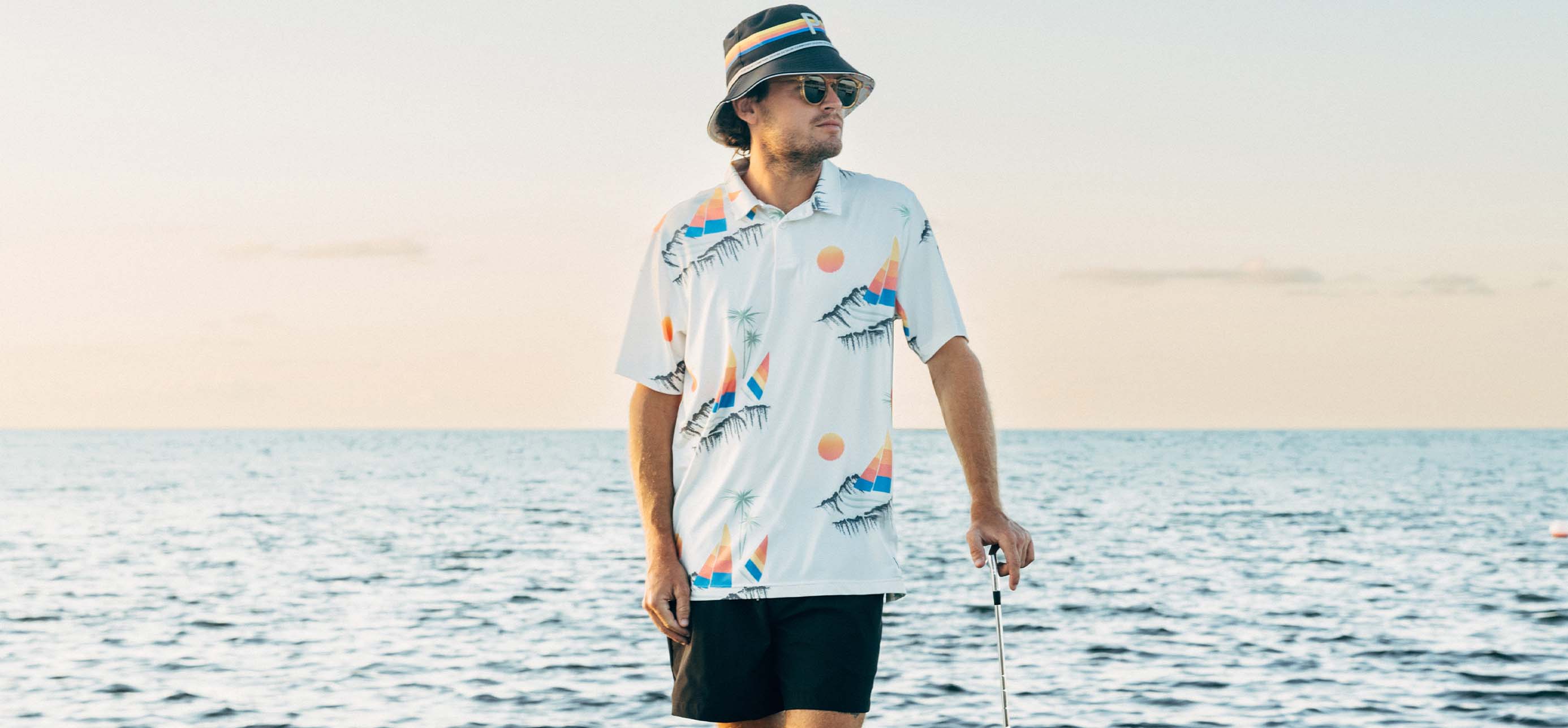 polo and bucket hat of sails and palm trees, sets the tone for this season’s capsule.