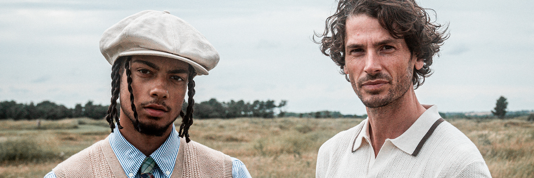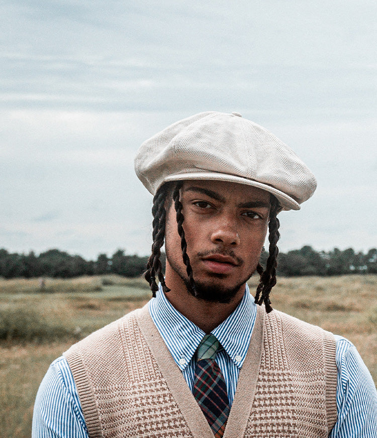 and function. The herringbone newsboy and madras tie provide additional novelty to top off any outfit. This